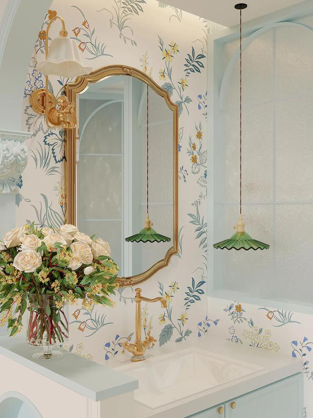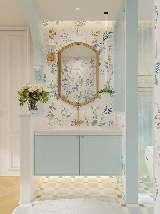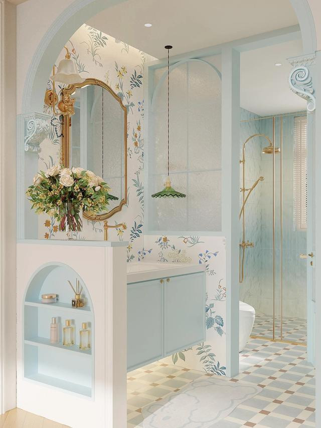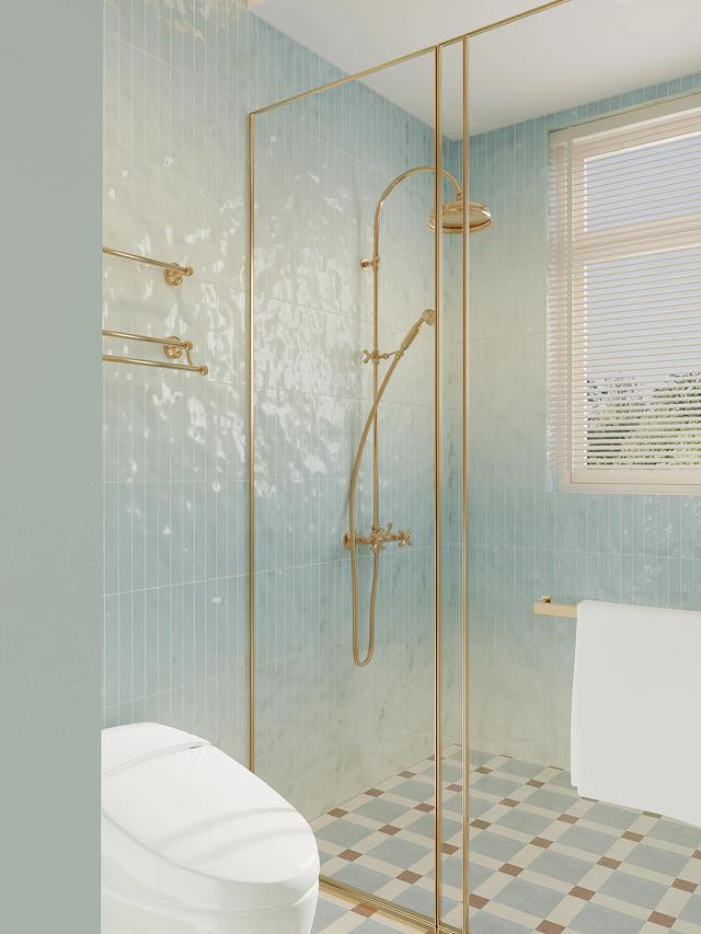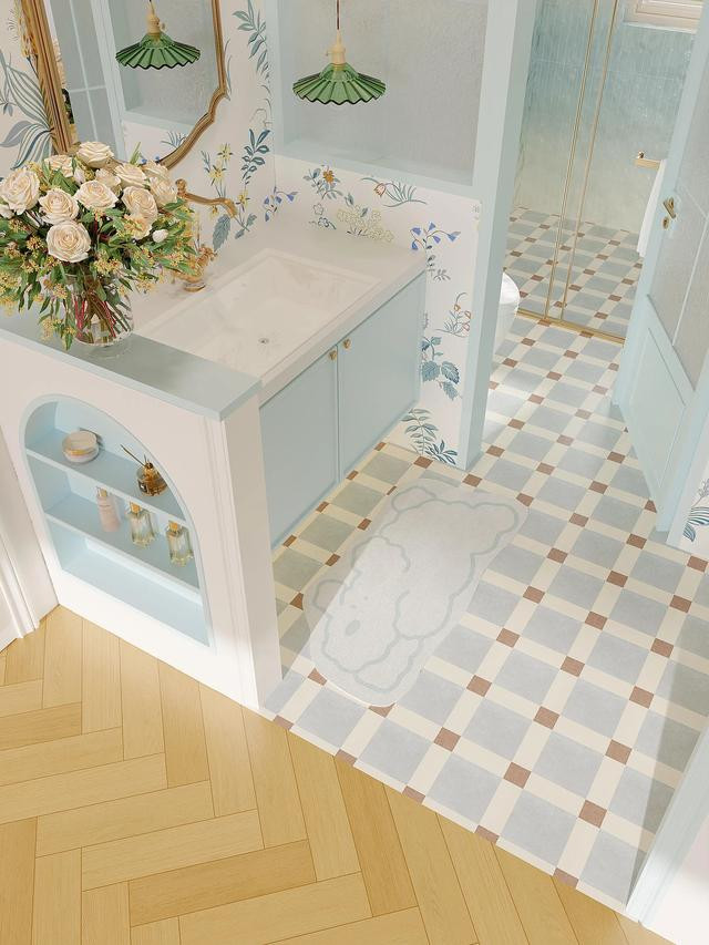 一眼心动的蓝色系, 蓝色的小花砖, 给浴室带来清新海洋风。